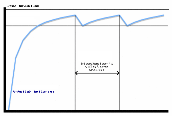 Bunun yerine Apache önbellek içeriğini düzenli aralıklarla temizleyebilmeniz için htcacheclean adında bir araç içerir. Önbellek için azami ne kadar yer kullanılacağının ve bunun üzerinde htcacheclean’i hangi sıklıkta çalıştırılacağının tespiti biraz karmaşık bir işlem olup uygun değerler genellikle deneme yanılma yoluyla bulunur.